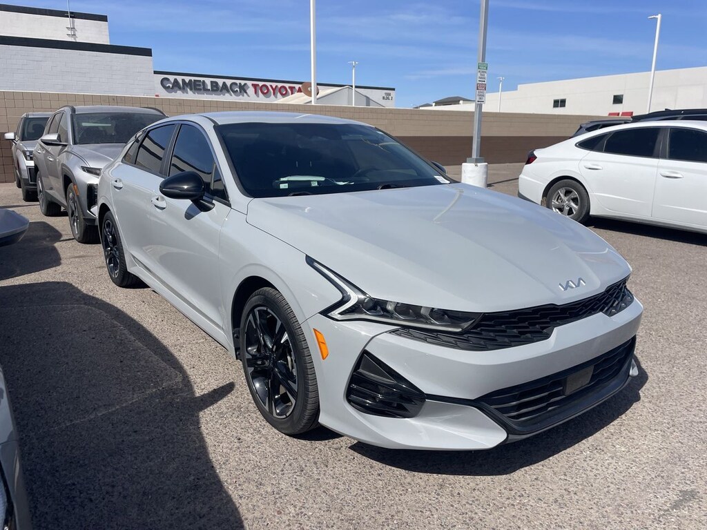 Powered by a turbocharged 1.6L I4 engine delivering 180 horsepower, this K5 GT-Line offers responsive acceleration and smooth handling through its advanced 8-speed automatic transmission with dual shift mode. The front-wheel-drive setup, paired with performance tires and aluminum wheels, ensures confident cornering and a dynamic ride. Inside, the driver-focused cabin features heated bucket seats with adjustable lumbar support and a power driver seat, keeping you comfortable on long drives. Stay connected and on course with the integrated navigation system and smart device integration, while the hands-free liftgate and remote engine start add convenience to your daily routine. Safety is paramount with a comprehensive suite including blind spot monitoring, lane keeping assist, front collision mitigation, and driver monitoring, giving you peace of mind on every trip. The sleek rear spoiler and LED headlights complete the sporty aesthetic, making a statement wherever you go. For those who appreciate a blend of style, technology, and performance, the Kia K5 GT-Line is ready to enhance your driving experience.