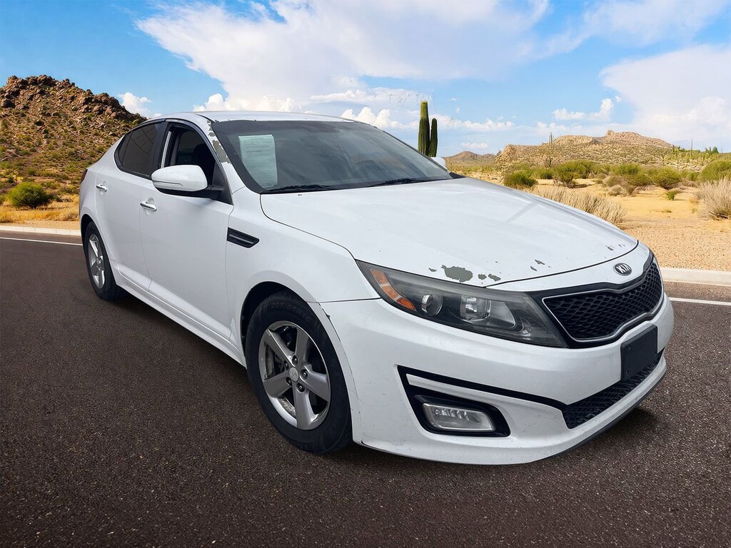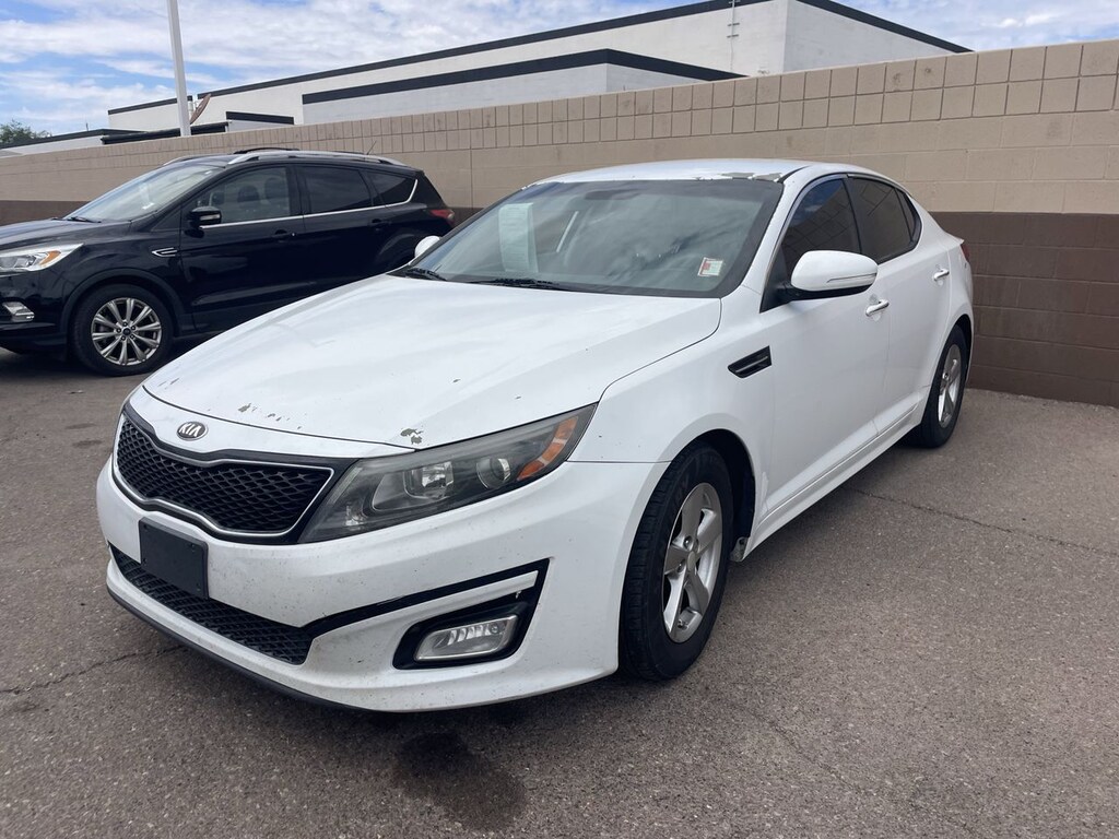 Experience confident, comfortable driving with the 2015 Kia Optima LX in Snow White Pearl, designed for those who value style, technology, and safety in their daily commute. Powered by a responsive 2.4L I4 engine paired with a smooth 6-speed automatic transmission featuring Sportmatic, this Optima delivers a balanced blend of efficiency and spirited performance. The front-wheel-drive setup and stability control system ensure precise handling and traction in various road conditions, while four-wheel disc brakes with ABS provide reliable stopping power.