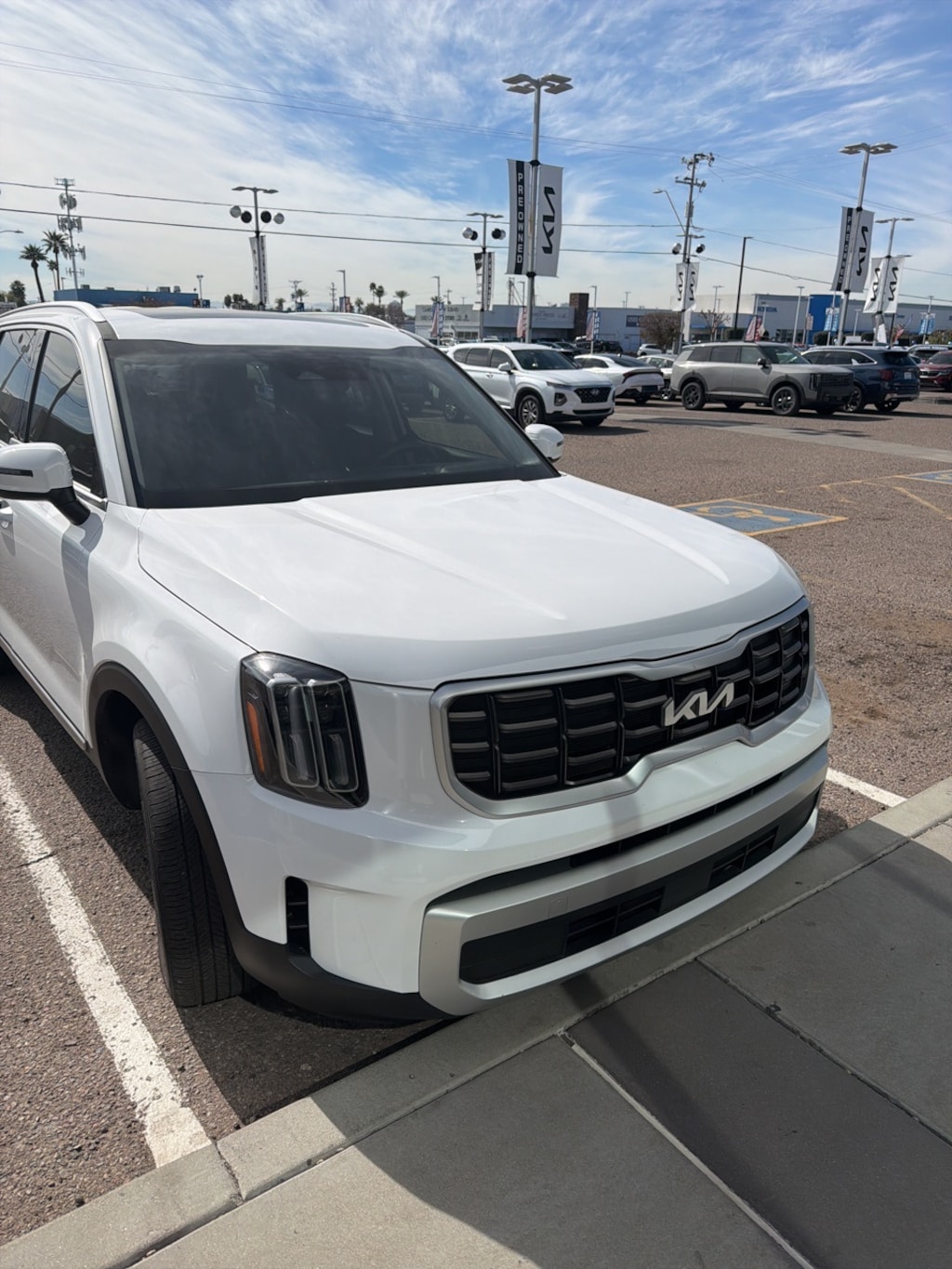 Step into the world of the 2025 Kia Telluride S, where sophistication meets adventure. This used gem, dressed in a stunning Glacial White Pearl, is designed for those who crave both luxury and performance in their SUV. Under the hood, the robust 3.8L V6 engine ensures a powerful yet smooth drive, perfectly complemented by an 8-speed automatic transmission. The Telluride's advanced safety suite, featuring Blind Spot Monitor, Lane Keeping Assist, and Rear Collision Mitigation, offers peace of mind on every journey. Inside, the cabin is a sanctuary of comfort with premium synthetic seats, a 3rd-row option, and heated front seats for those chilly mornings. The smart device integration and WiFi hotspot keep you connected, while the hands-free liftgate and power liftgate provide convenience at your fingertips. The sun/moonroof invites natural light, enhancing every drive with a touch of the outdoors. Whether you're navigating city streets or exploring new terrains, the Kia Telluride S is your trusted companion, offering a seamless blend of style, safety, and innovation. Embrace the journey with a vehicle that truly understands your needs.