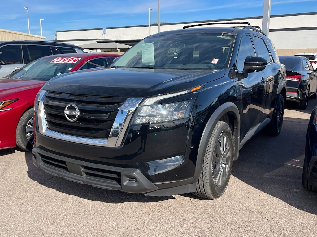 Experience confident family adventures and daily drives in the 2024 Nissan Pathfinder SV, designed for comfort, safety, and smart technology in a sleek Super Black finish.